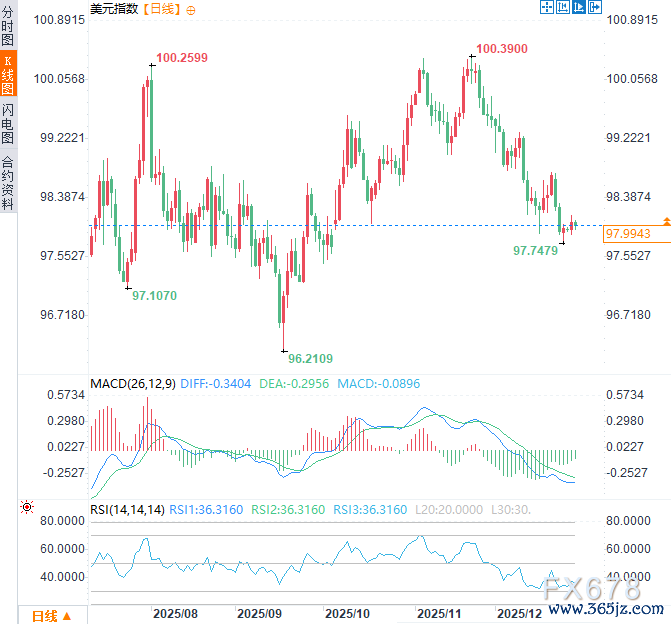 这种深刻结构性矛盾所带来的“内伤”,或许注定了美元指数的长期走势将面临持续的、内生性的下行压力。周一(12月29日)亚市时段,美元指数于98.00附近窄幅震荡,位于10月初以来低点(97.75)附近上方不远处。